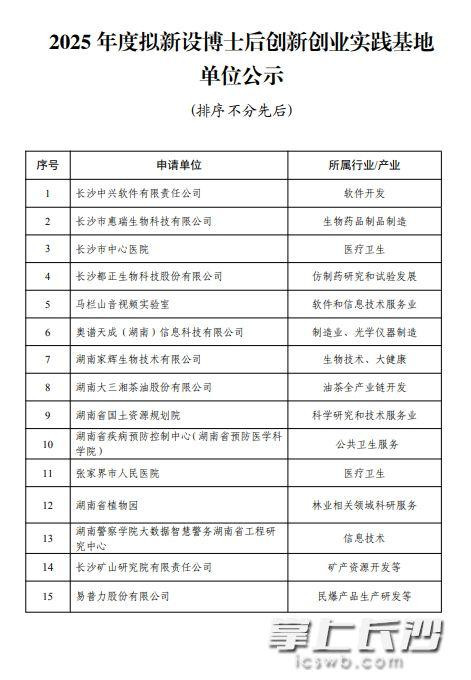 长沙晚报掌上长沙7月9日讯(全媒体记者刘攀)记者今日从湖南省人力资源和社会保障厅获悉,经专家综合评议,拟确定长沙中兴软件有限责任公司等15家单位设立博士后创新创业实践基地,公示持续至11日。